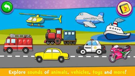 Use your fingers to play colorful instruments such as kids xylophone, drum kit, piano, saxophone, trumpet, flute and electric guitar. Let your child make music on your phone or tablet. It is great fun for toddlers and kids to sit down and learn how to play musical instruments with authentic sou