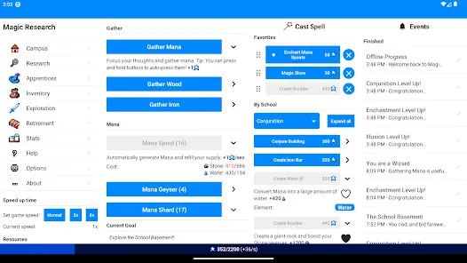 In Magic Research, you are the headmaster of a newly-created institution of Magic with one goal: to learn as much as possible about this power and get enough fame to be able to compete, and win, the prestigious competition of schools: the Tournament of Magic. But what will you discover along the way?
